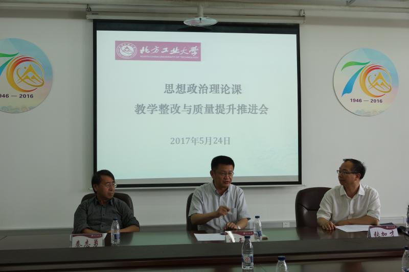 为贯彻中央和北京市高校思想政治工作会议精神,落实我校思想政治理论课“质量建设年”的任务要求,5月24日下午,“北方工业大学思想政治理论课教学整改与质量提升推进会”在瀚学楼1208会议室召开。校党委副书记郭玉良、学工处(研工部)处长高国伟、教学信息员谭亚俐,以及谈球吧全体教师和部分学院辅导员参加了会议。会议由谈球吧院长张加才主持。