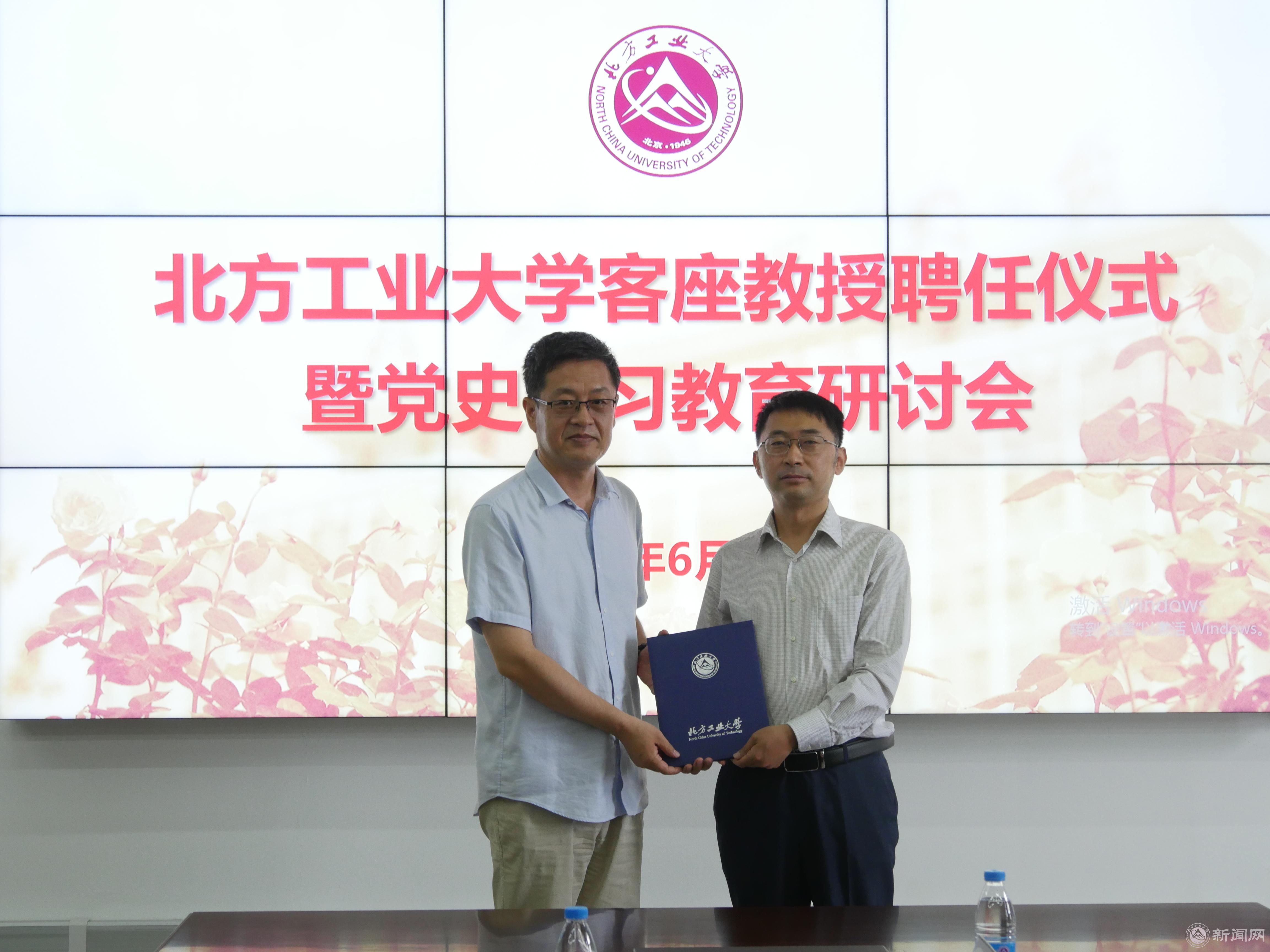 柳长安为杨奎研究员颁发客座教授聘书,并对此次合作提出了殷切期望。他谈到,杨奎研究员具有较高的学术水准,是一位马克思主义学术研究与理论阐释的著名学者,能够为我们提供多方面支持和帮助;马院师资团队具有很强的学术潜力,是一支学术基础扎实和研究能力突出的战斗力量,有志于贡献马克思主义理论研究的北方工大智慧;双方的联合是一次科研先锋队与教学主力军的胜利会师,有助于形成显著的协同发展效应。