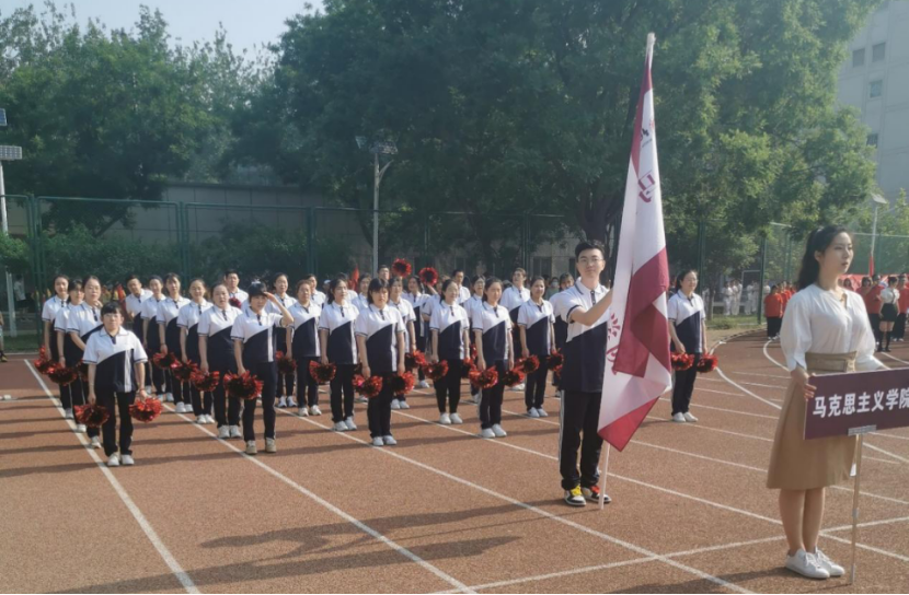 为迎接这场体育盛会,由谈球吧院长袁本文亲自领衔的36名师生代表组成了统一着装、精神饱满的开幕式方阵。伴随着“青春激扬,马院最强。百年征程,扬帆起航。我心向党,势不可挡。不忘初心,敢于担当。爱我中华,奋力向上。马院学子,共创辉煌!”这铿锵有力的口号,方阵依次变换成“100”、“I”、“♥”、“中”、“国”的字样。谈球吧以此别出心裁的创意向全校师生展现了马院学子们的朝气与活力,更是为建党100周年献上一份特殊的贺礼!
