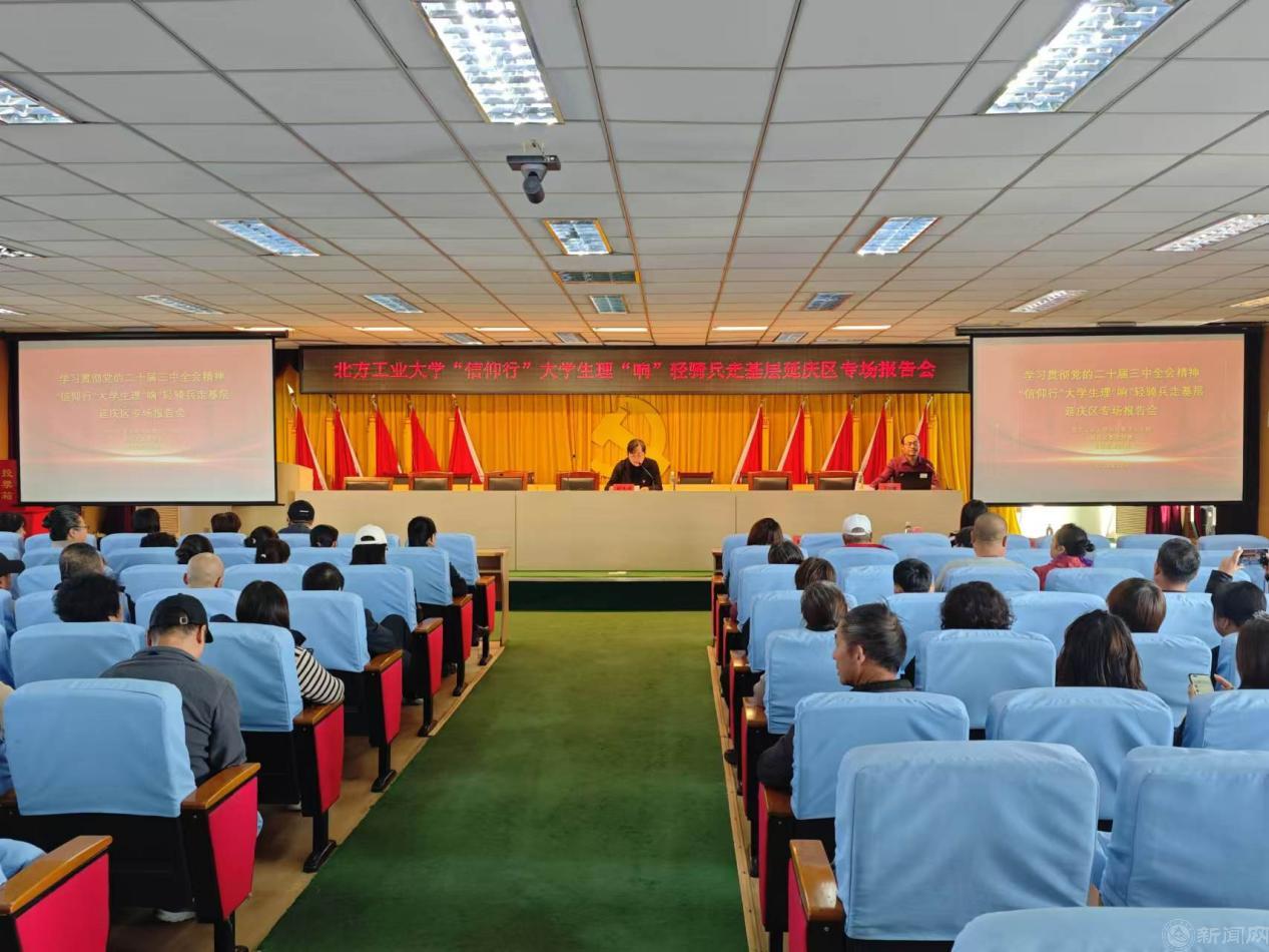 为进一步凝聚思想共识、筑牢理论根基,推动党的二十届三中全会精神紧贴实际、深入人心,10月24日,谈球吧师生宣讲团一行赴延庆区,开展“信仰行”大学生理“响”轻骑兵走基层活动。师生们分别来到延庆镇、旧县镇和香水园街道,开展党的二十届三中全会精神专题宣讲。二百余名党员代表、群众代表参加报告会。宣讲活动受到当地党员群众的普遍好评。