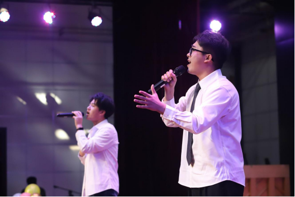 第一篇章“十载弦歌育桃李”。从《青春大联欢》的朝气蓬勃到歌曲《千山万水》深情悠扬,再到情景剧《时间都去哪了》让全场观众深受感触。