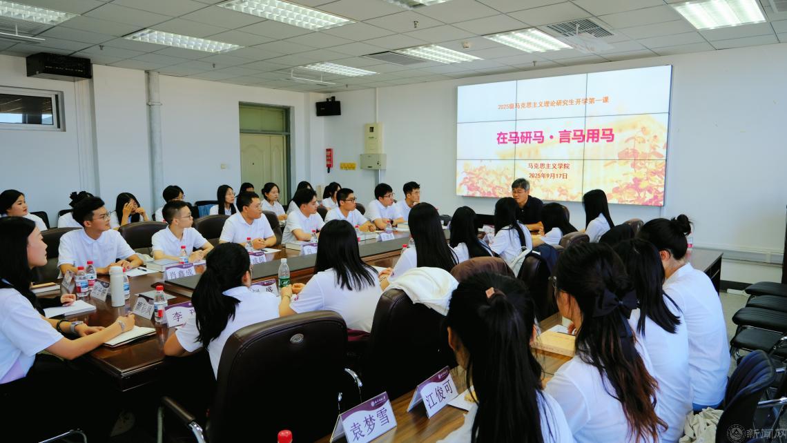 2025级新生代表肖鑫成分享了学习马克思主义理论的初心,讲述备考时的奋斗历程,并定下入学后“读好有字与无字之书、做到知信行统一”的目标。24级学生代表张熹瑶以“理论为帆,实干为桨”发起倡议,呼吁新同学做卓越体验者、真理问道者和时代实干者,鼓励大家永葆初心,在研途上破浪前行。