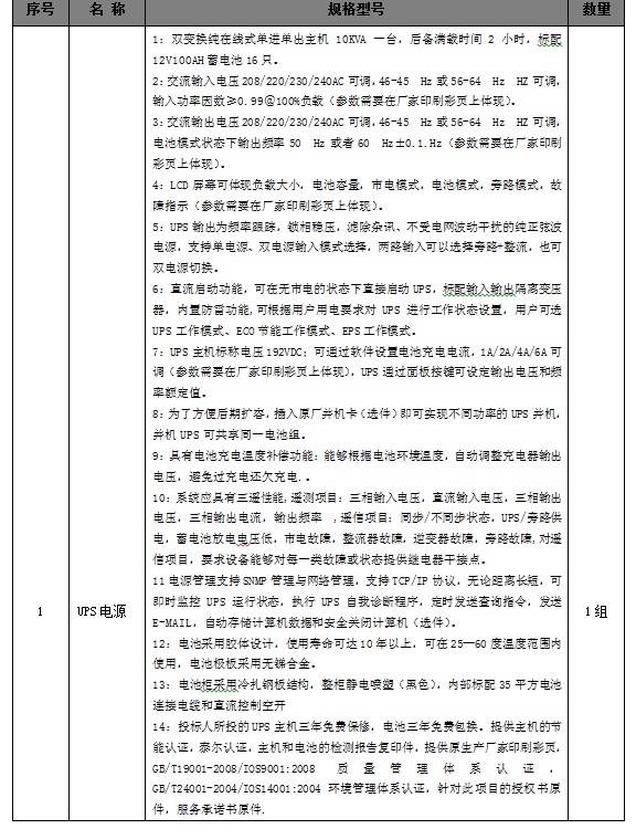 4、就以下采购UPS不间断电源参数及相关要求,向学院做一次性书面报价(单价(含安装接线),供应商一经报价,即不可撤回。