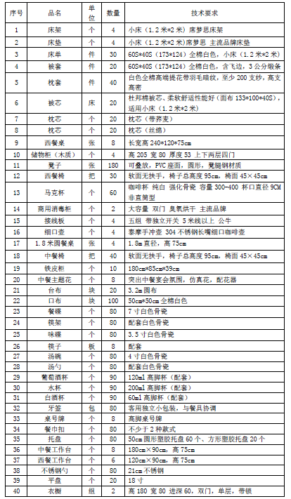 安徽财贸职业学院餐饮、客房实训室需要采购实训物品。经研究决定以询价方式采购招标,现将有关事项说明如下: