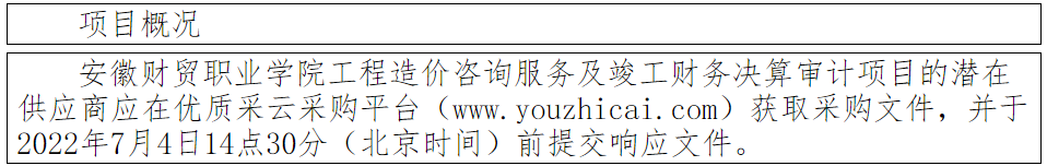 项目名称:安徽财贸职业学院工程造价咨询服务及竣工财务决算审计项目