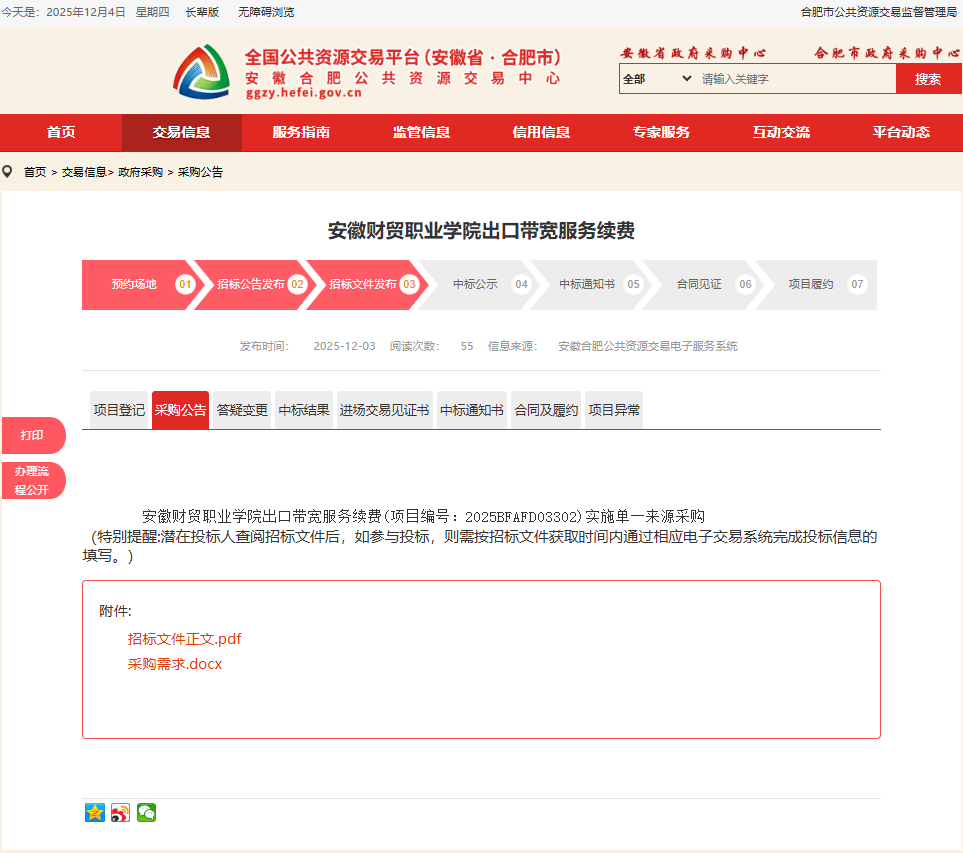 发布时间:2025-12-04 来源:安徽合肥公共资源交易中心