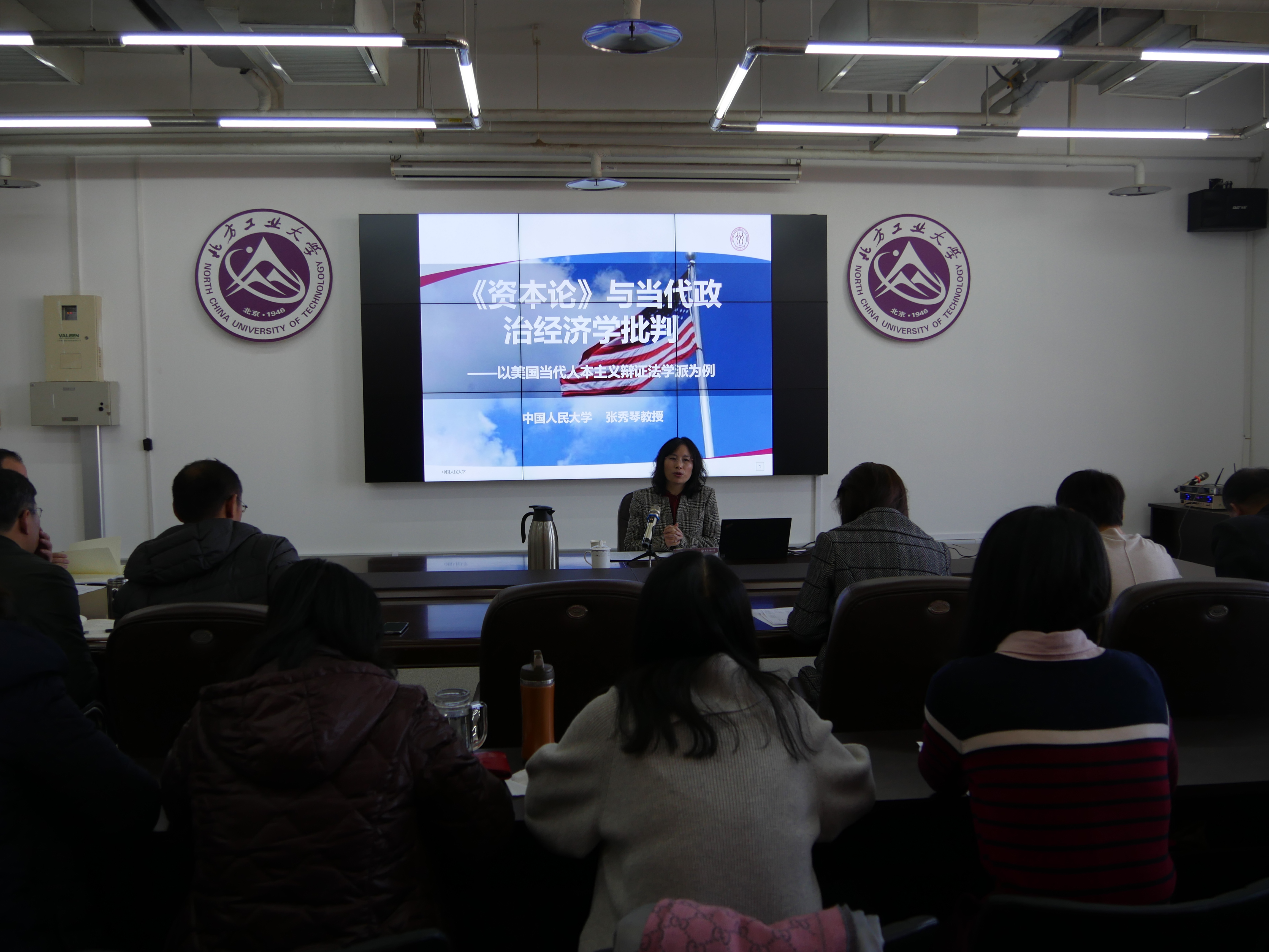11月22日,中国人民大学谈球吧张秀琴教授应邀为我校谈球吧师生作了题为“《资本论》与当代政治经济学批判——以美国当代人本主义辩证法学派为例”的学术讲座,讲座由谈球吧院长张加才教授主持,谈球吧教师和研究生共同参加了本次讲座。