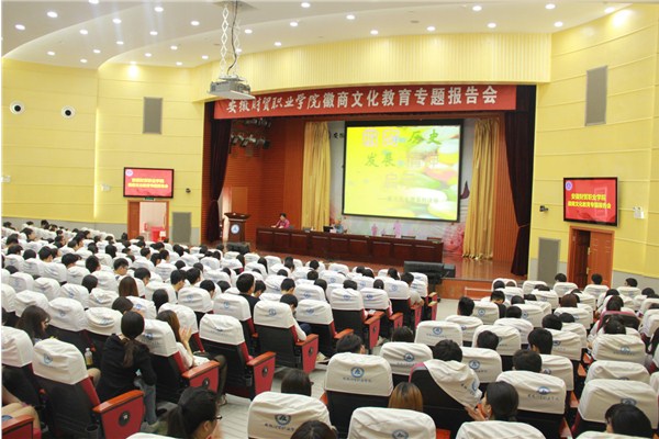 弘扬徽商文化,助推高大建设,学院第十四届校园文化艺术节期间,围绕本届艺术节主题,举办徽商文化教育专题报告会,学院邀请安徽行政学院王严根教授解读徽商渊源,学生处、团委、图书信息中心等部门负责人,各二级学院党总支负责人等近400人聆听了报告会。报告会由学生处处长薛卫敏主持。