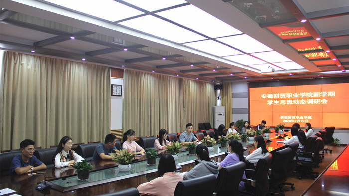 为深入了解学生新学期开学后的思想状况,及时掌握学生在疫情期间对国家大事、社会热点、疫情防控、学习生活等问题的看法,全面、准确、有效地做好新学期学生返校思想政治工作,增强学生思想政治教育工作的针对性和实效性,9月22日上午,学校团委在第四会议室组织召开“安徽财贸职业学院新学期学生思想动态调研会”,来自各院部16名学生代表参加会议,会议由学校团委副书记王学峰主持。