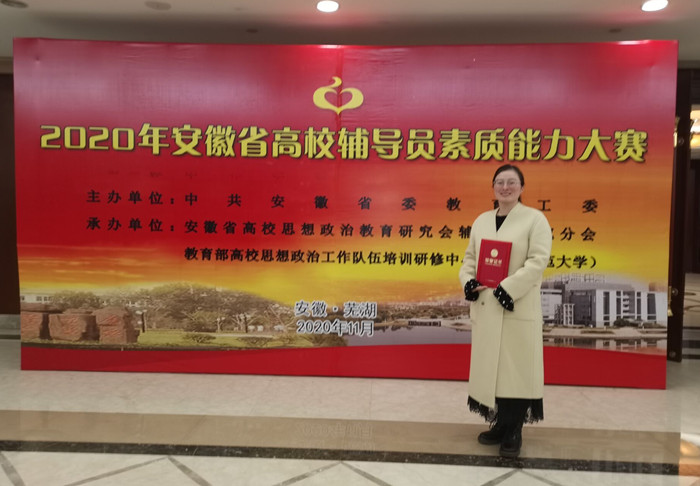 11月24日至27日,由中共安徽省委教育工委主办,安徽省高校思想政治教育研究会辅导员研究分会、教育部高校思想政治工作队伍培训研修中心承办的2020年安徽省高校辅导员素质能力大赛在安徽师范大学举行。来自全省本、专科各个高校的87名选手同台竞技,我校经济贸易学院专职辅导员史婉笛荣获大赛二等奖。