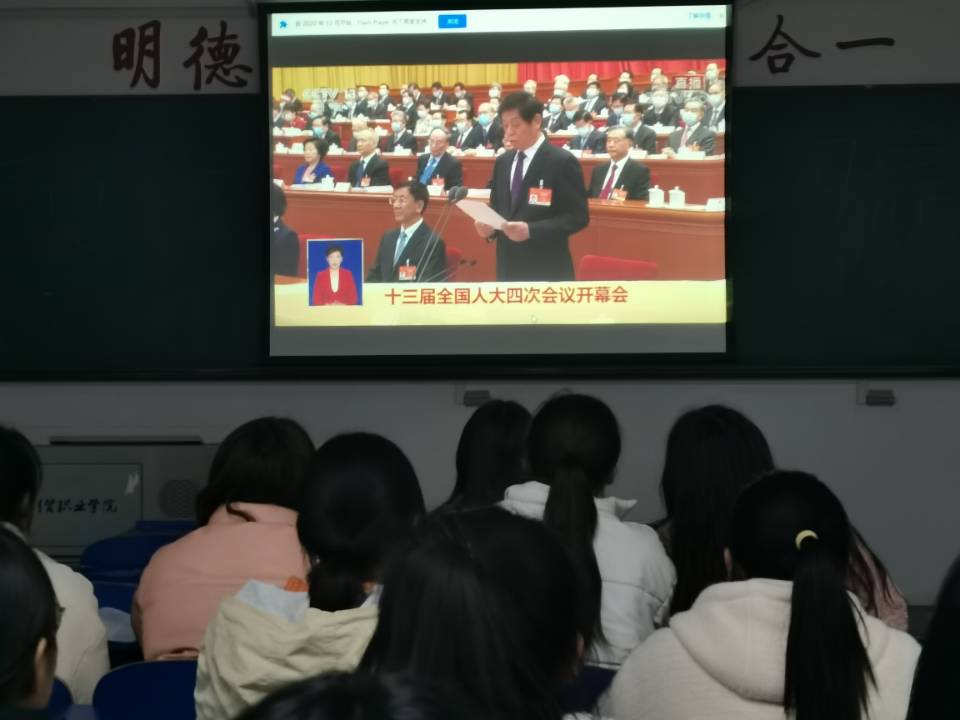 3月8日至3月12日,学院团委组织全院在校学生观看《十三届全国人大四次会议开幕式》、习近平《在全国脱贫攻坚总结表彰大会上的讲话》等重要内容,认真做好新学期我院大学生的思想政治教育,上好开学第一课,在青年大学生中大力弘扬奋发进取的时代精神。