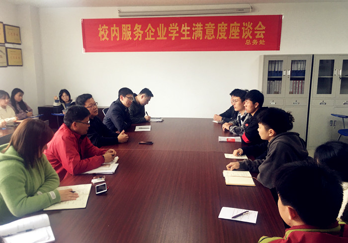 为进一步提高服务质量,倾听广大学生的心声,了解学生对后勤保障服务的意见及需求。3月16日中午,总务处在综合楼四楼会议室召开校内服务企业学生满意度座谈会。总务处副处长张伟、团委学生发展中心主任孙峻峰、学生处公寓管理中心主任刘成、总务处相关人员、各院部近20名团学干部代表参加座谈会,会议由总务处副处长魏立新主持。