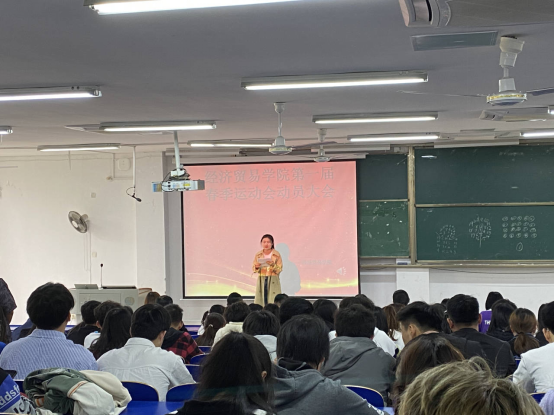在学校运动会开展之际,为充分调动运动员的积极性,全面做好运动会期间的各项工作,经济贸易学院于2021年4月16日中午在6103教室召开院春季运动会动员大会。全体学生干部和运动员代表参加会议,副书记丁蓉、团总支书记张超、运动员领队以及全体学生管理工作者出席了此次会议,会议由学生会主席全丹妮主持。