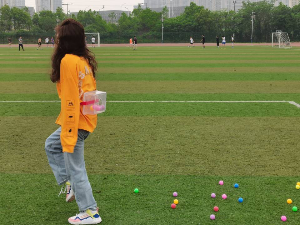 操场上,同学们热情高涨,比赛在如火如荼进行。参赛小组每组一共有四个人,一人负责答题,其余三人负责游戏部分,游戏部分的每个环节通关成功后才能为组员争取到答题机会,答题正确后才能进入下一关卡。此次活动不仅能够考察同学们对党史知识的熟悉程度,同时也在考验小组成员之间的默契程度和团队精神。
