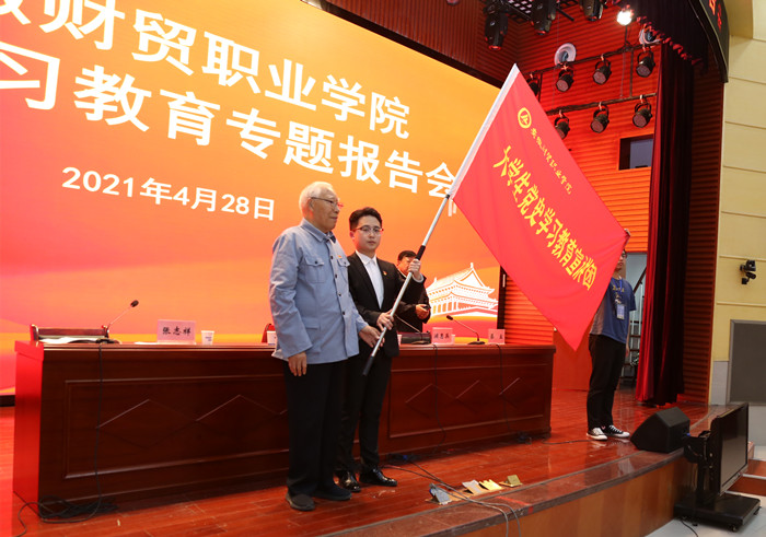 4月28日下午,学校在图书馆报告厅举办党史学习教育专题报告会,特邀98岁的省供销社离休老干部、八路军老战士王亚平和97岁的新四军老战士浦惠英为师生讲述党史故事。省供销社党组成员、理事会副主任魏邦余,学校领导刘银国、何翔、胡戴新出席报告会。学校党委书记张志祥主持报告会。