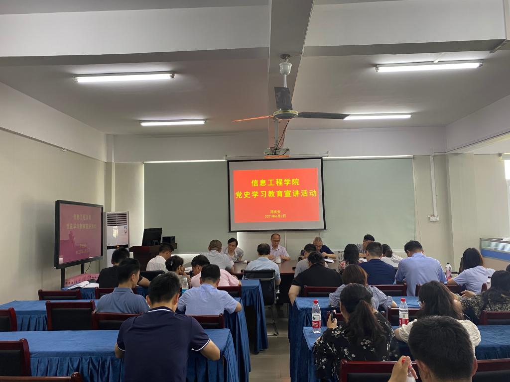 6月2日下午,信息工程学院开展党史学习教育宣讲活动,信息工程学院党总支书记邓庆安主持活动,学院全体教师参加了学习。