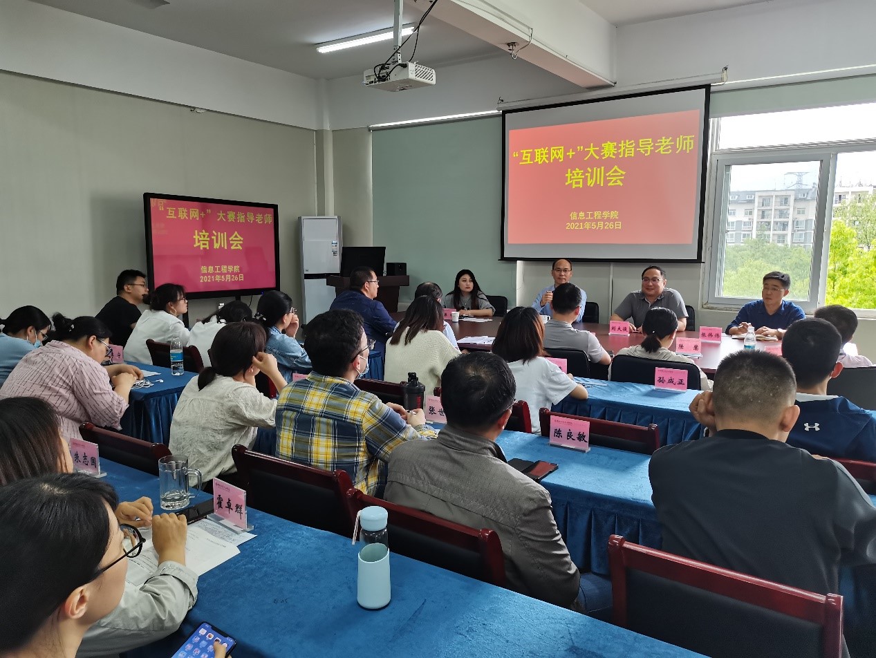 5月26日下午,信息工程学院举办第七届“互联网+”大学生创新创业大赛指导老师培训会,特邀教务处副处长刘大俊,赛事与双创办公室主任陈曦为准备组队参加“互联网+”大赛的老师做培训和交流。会议由信息工程学院院长张成叔主持。