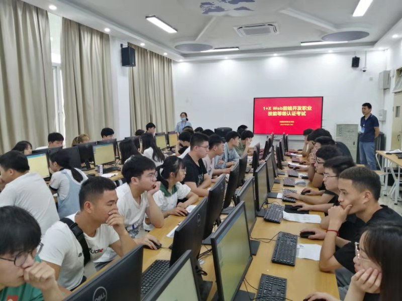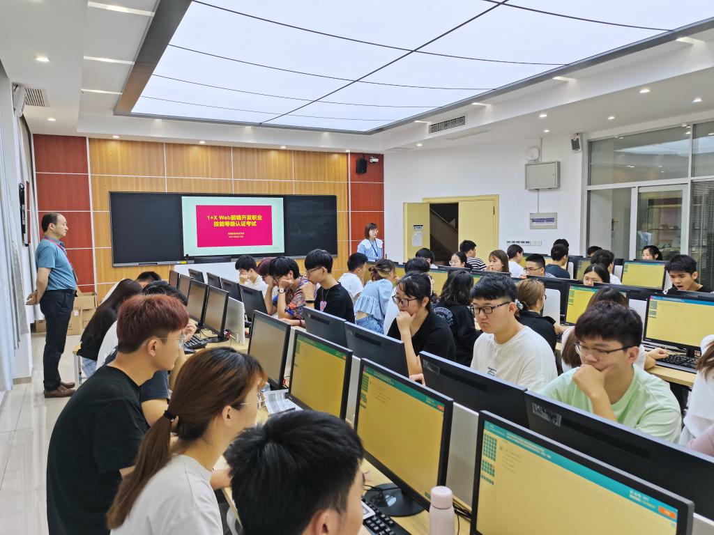 6月19日,信息工程学院圆满完成了“1+X”Web前端开发职业技能等级证书(初级)认证考试工作。本次认证考试分理论和实操两部分,我校软件技术、计算机应用技术、移动应用开发三个专业共有155名同学报名参加了本次考试。