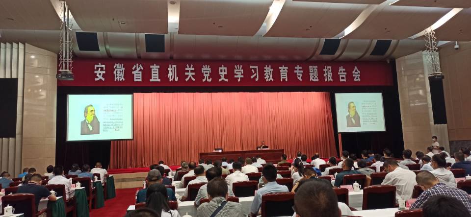 为认真学习宣传贯彻习近平总书记关于党史的重要论述,充分运用我省红色资源,推进党史学习教育,6月11日,学校组织人员参加省直工委党校党史学习教育第5场专题报告会《华中抗战的钢铁长城——新四军的历史地位与重要贡献》,报告由宣城市委党史研究室二级调研员陈虎山主讲。