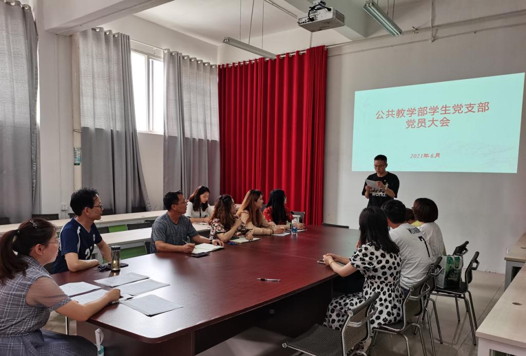 6月30日,公共教学部学生党支部在行政楼208室召开了2021年上半年预备党员转正大会,党总支副书记何步新、党总支委员及学生党支部全体党员教师参加了此次会议。