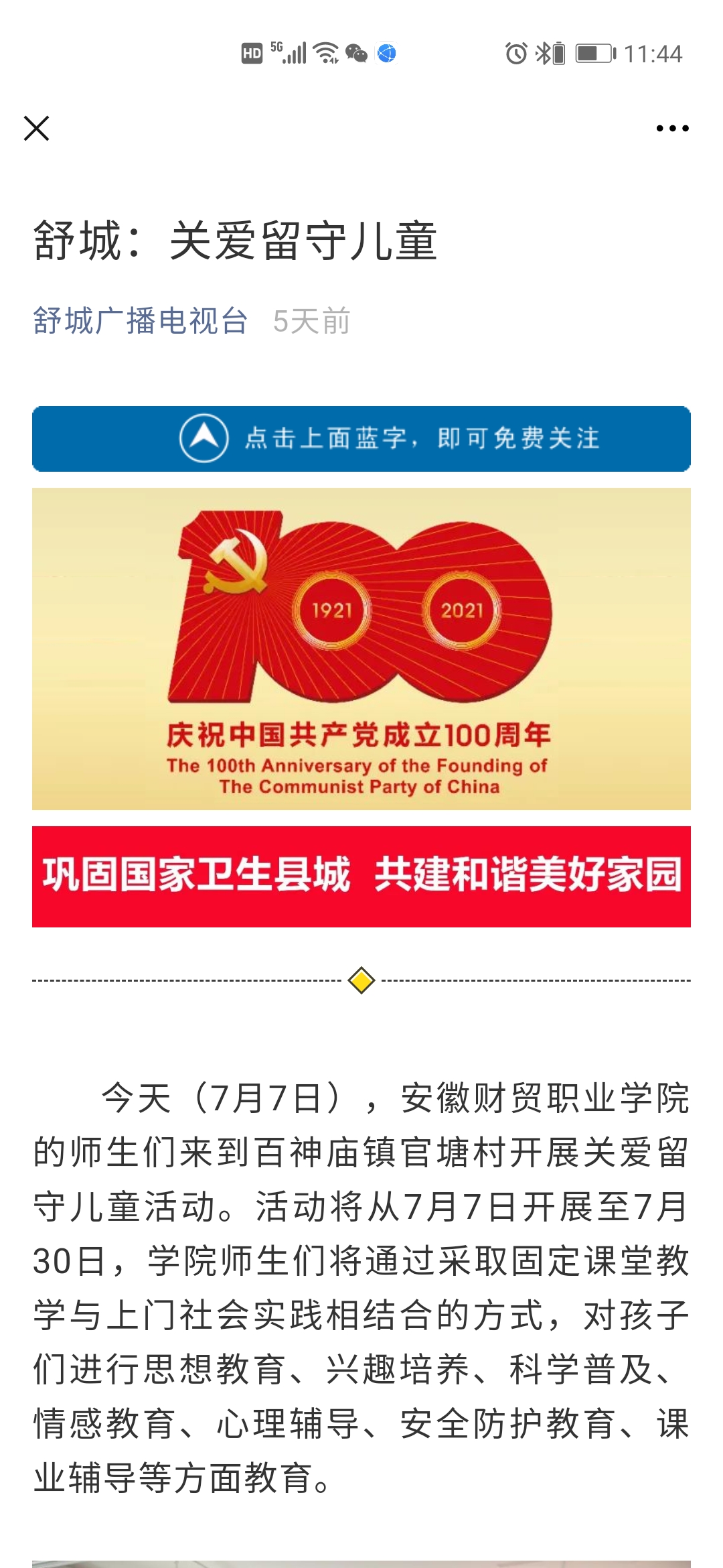 7月7日,学校团委组织8名优秀大学生来到舒城县百神庙镇官塘村开展2021年大学生暑期“三下乡”社会实践驻村支教活动。活动得到了当地政府、村委会和村民的充分肯定,舒城广播电视台对此次活动的开展做了相关的报道。