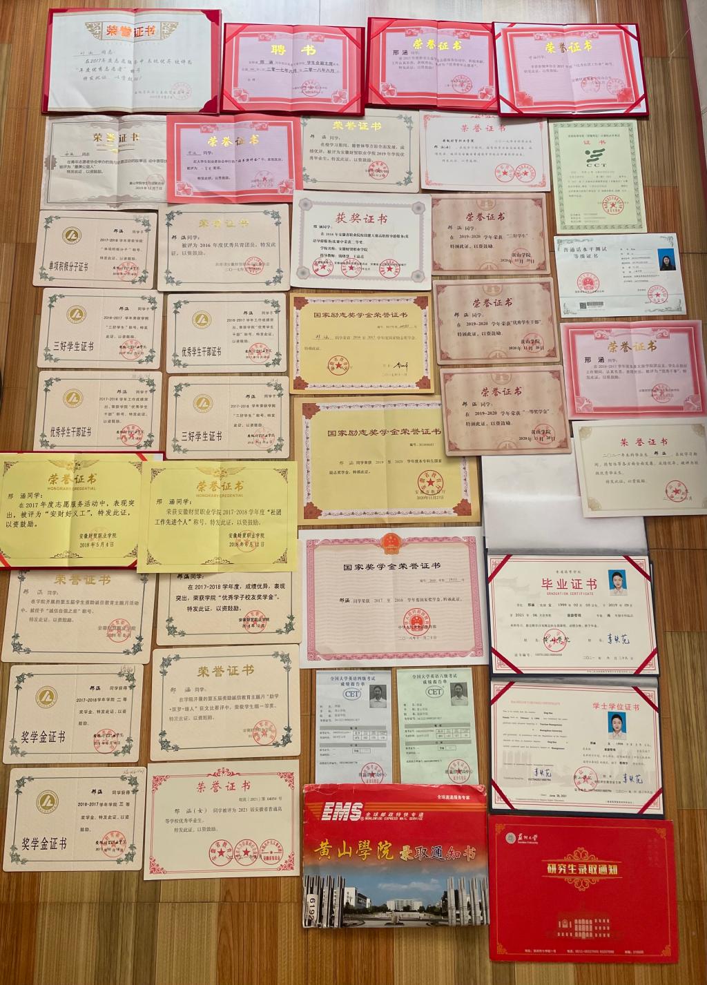 自她进入财贸后的巨大变化,让她看到自己的更多可能。因而她决定专升本,经过半年的奋力备考顺利考上黄山学院。进入本科丝毫没有松懈,同样是班长+学生的身份,但在平衡班级事务与个人学习上更加游刃有余。同样以学年综合测评第一的成绩获得国家励志奖学金、校级一等奖学金、优秀学生干部等荣誉称号,被评为2021届安徽省双优生、黄山学院双优生。