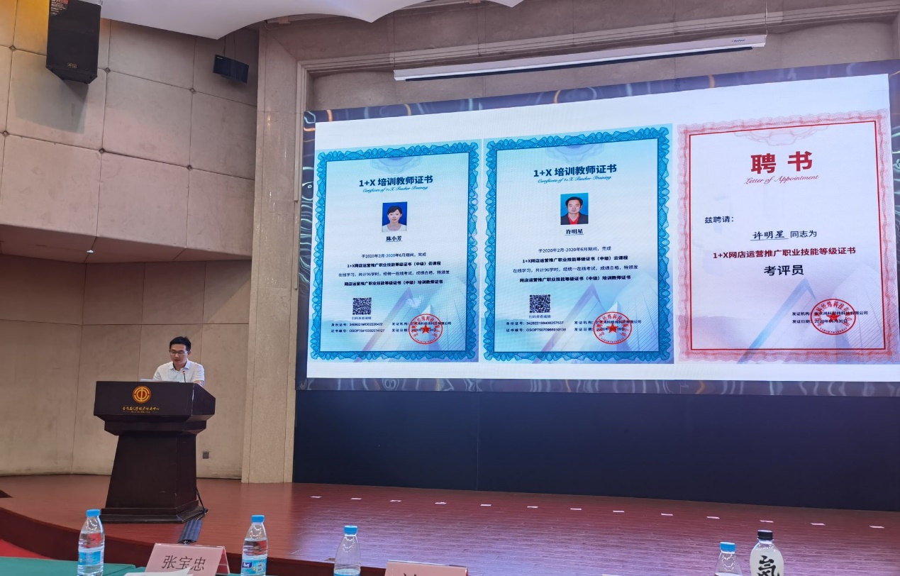 “网店运营推广”职业技能等级证书试点院校工作总结会暨颁奖仪式于7月15日至18日在厦门举办,我校教务处处长王海龙教授受邀出席参加此次会议并做主题发言,王海龙从教师培训的积极性、学生考证的主动性、证书考点资源配置的优先性三个方面分享了我校在职业技能等级证书试点工作中的做法经验,得到国内院校同行的高度赞许。