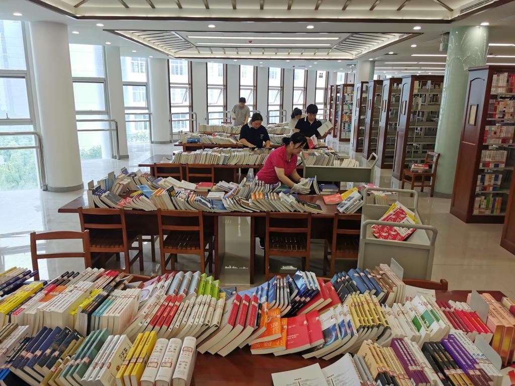 新学期是学校“十四五”事业发展开局起步的重要起点,作为身兼服务功能和教育功能于一体的图书馆,以实际行动和崭新的精神面貌做好新学期的各项工作。全体馆员在图书馆馆长王永平的带领下,从七月开始,在闷热的书库中顶着酷暑集中工作,赶在假期前将因装修而积压两年的新书全部注册上架完毕,倒架整理工作陆续收尾;为落实学校疫情防控工作,保障广大读者生命健康安全,八月底又集中力量提前清扫各书库,使得三层楼6个书库的面貌焕然一新。从本学期起,图书馆二楼、三楼和四楼书库正常开放,同时提供一楼和五楼两个自修室供学生使用,精品书库和一楼的新华书店也即将在众师生的期待中揭开神秘的面纱。图书馆将积极引导师生读者们使用线上馆藏查询系统与自动借还设备;错峰入馆时,请大家佩戴口罩,隔位而坐。