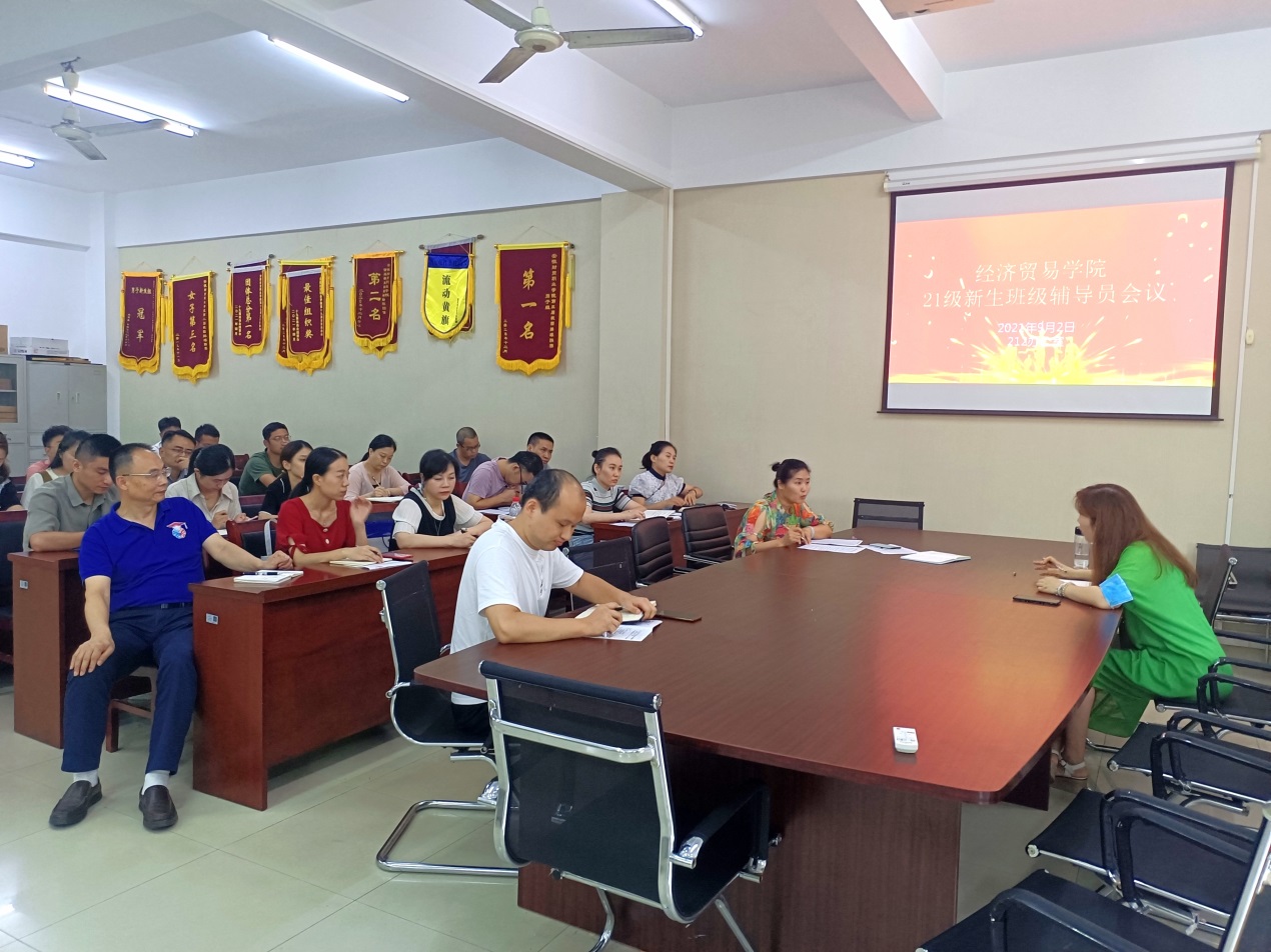 为确保新学期迎新工作安全、高效、有序开展,9月2日下午,经济贸易学院举办迎新工作部署会议,经济贸易学院党总支书记陶云龙、党总支副书记丁蓉、团总支书记张超、学生秘书刘桂芳、孙建华以及全体2021级新生班专兼职辅导员参会,会议由丁蓉主持。