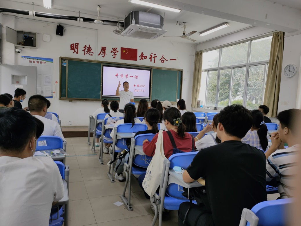 专职辅导员老师朱艳明从学校的校规校纪、防诈骗安全教育、疫情防控等方面对电商2103等班级的新生进行了入学第一课教育,引导学生积极思考,倡导学生培养安全防范意识,共同营造平安和谐的校园环境。