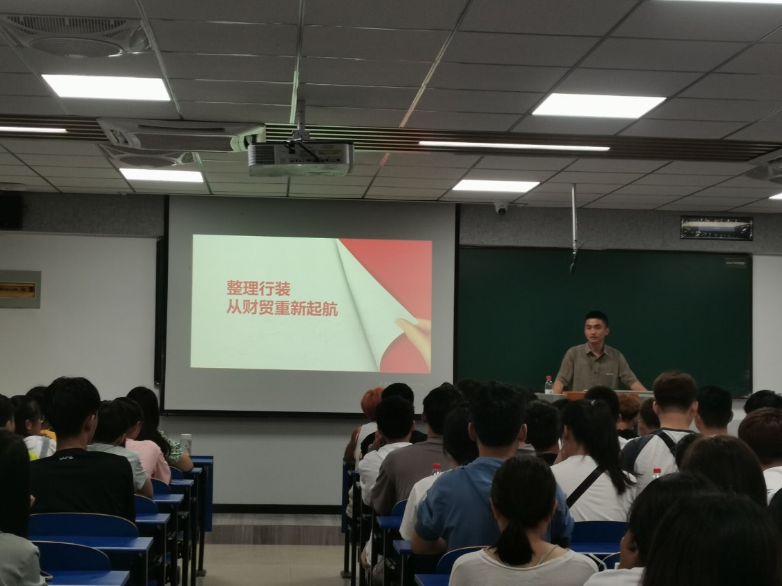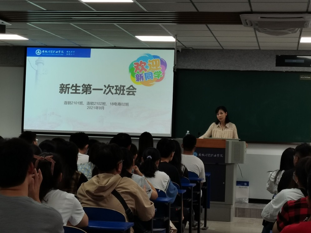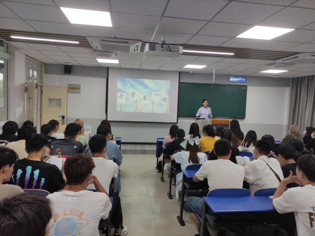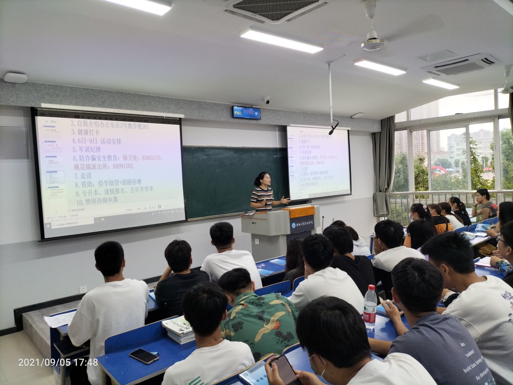 新生入学教育是新生适应大学生活、确立人生目标、培养高尚品格的关键一步,是加强和改进大学生思想政治教育工作的重要内容。为切实做好2021级新生入学教育,帮助新生尽快适应大学校园环境,引导新生树立正确的世界观、人生观和价值观,9月5日,新生开学报到结束后的首日,经济贸易学院2021级全体辅导员纷纷踏入教室,为新生开展入学教育主题班会,开启与新生的首场见面会。