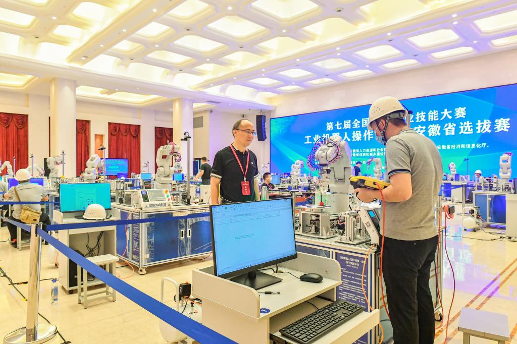 第七届全国职工职业技能大赛安徽省选拔赛由安徽省总工会、省人力资源和社会保障厅、省科技厅等六部门联合主办,设置数控机床装调维修、钳工、焊工、工业机器人操作调整工、网络与信息安全管理员、砌筑工等共6个工种赛项。通过岗位练兵、层层选拔,全省共有134个代表队453名选手报名参加了大赛。选拔赛的优胜选手还将代表安徽省参加10月份在四川成都举行的第七届全国职工职业技能大赛决赛。