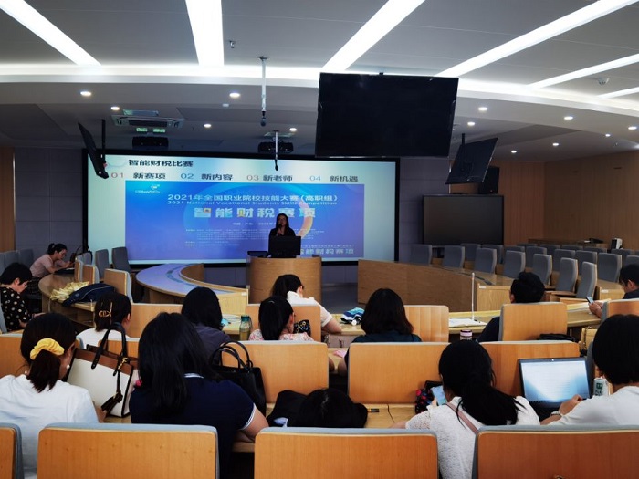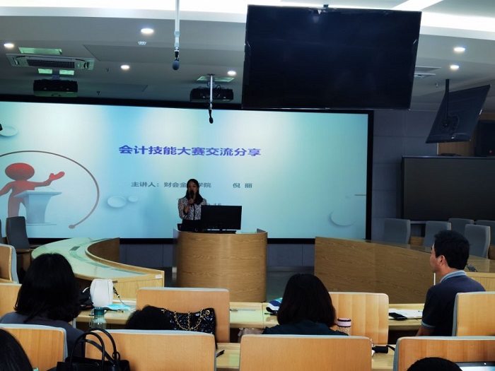 会上,财务管理教研室副主任王茹分享了“智能财税”赛项的概况、大赛的历程,从选拔学生、训练方法、训练计划等方面总结了比赛的经验,并展望了职业技能大赛的美好未来。财务管理教研室主任倪丽介绍了会计技能大赛竞赛规程、大赛指导情况并分享了自己的心得感悟。金融教研室杨梓老师介绍了“银行业务综合技能”赛项,从赛前的日常培训管理、统一战略战术、竞赛内容到赛场的惊险刺激以及赛后分析不足,将参赛经验毫无保留地分享给大家。