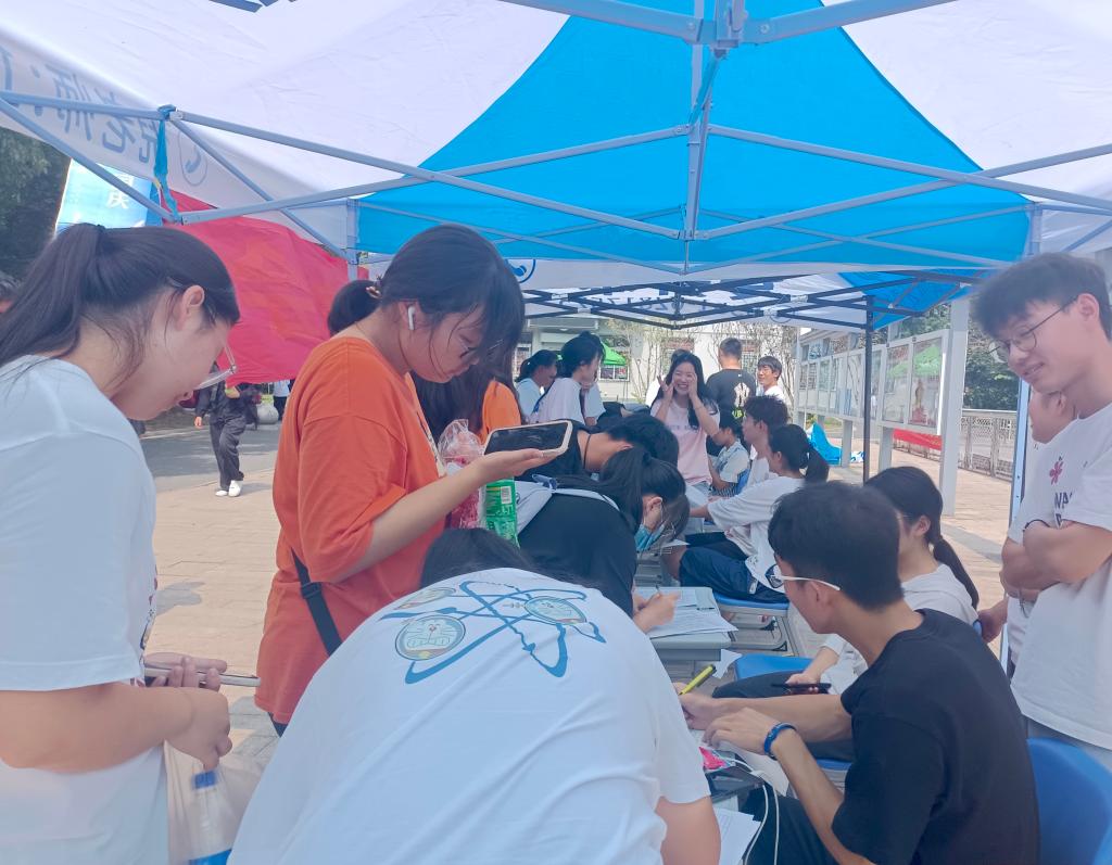 烈日炎炎晒不退师生读者们积极参与的热情,场地上也活跃着读书协会会员们忙碌的身影。此次海报签名反响良好,活动旨在扎实推进党史学习教育,激发广大师生读者爱党爱祖国的壮志豪情,充分展现新时代青年学生锐意进取、砥砺奋进的精神风貌和爱国情怀。(供稿:宣融融 审稿:王永平)