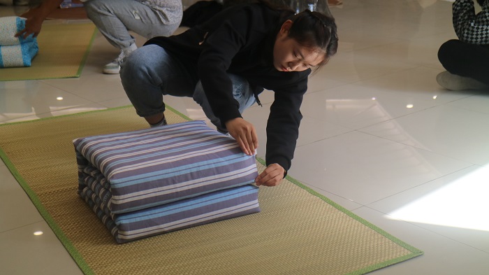 叠军被大赛是我院安全卫生文明月的传统活动之一,为充分做好赛前准备,财会金融学院于9月组织开展了针对230余位新生寝室长的叠军被培训活动,10月初顺利开展叠军备大赛初赛活动。经过激烈角逐,10月13日中午,财会金融学院在图书馆一楼举行叠军被大赛决赛,在比赛现场,参赛选手们有条不紊做好每一个动作,蹲下、铺平、压实、翻折、抠角、捏线一气呵成。大家认真对待叠被子的每一个细节,一捏一折,动作利落娴熟,被整理过的被子棱角分明,结构紧凑。