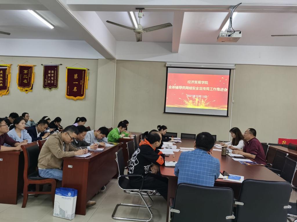 陶云龙总结了经济贸易学院前期防网络诈骗宣传工作的经验和教训,鼓励全体辅导员继续深入开展防网络诈骗宣传工作,没有网络安全就没有国家安全,加强日常防范,自觉维护网络安全是每一位公民的责任与义务。学生会学生权益维护部负责班级中向同学们宣传引导通过“反诈中心”APP进一步掌握更多相关知识;组织部负责组织“网络安全”主题口语训练、演讲、知识测试等专题活动,以提高学生防范意识;组织学生积极参加线上教育部、公安部指导中国大学生在线、腾讯举办“守护青春网络有你”全国大学生网络安全知识竞答,通过线上问答普及网络安全知识,提高大学生安全使用网络的能力;辅导员以各个班级为阵地,通过线上线下,全方位多角度的宣传防护安全网络知识。