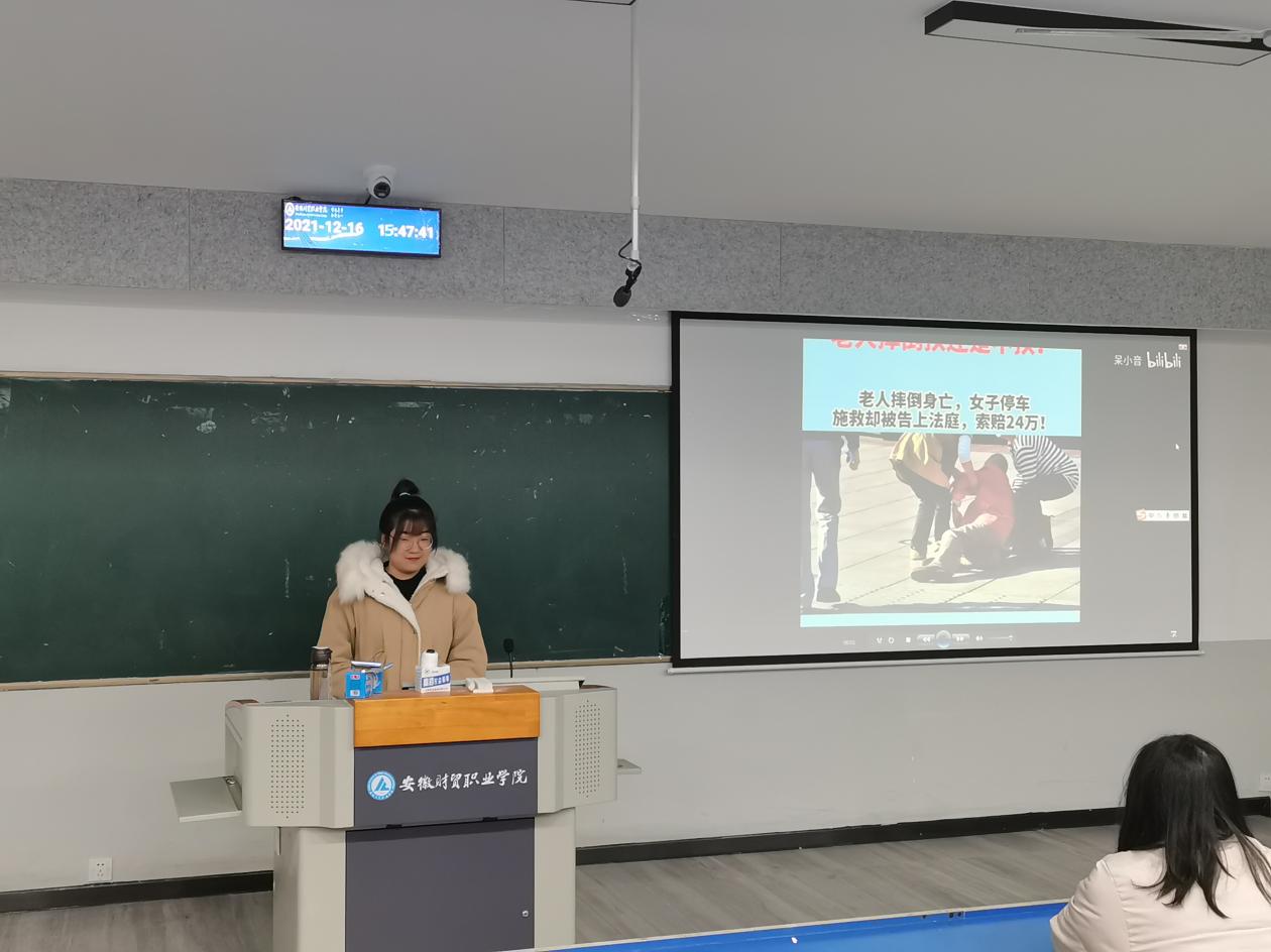 此次主题实训内容丰富,展现形式多样:有的小组围绕崇德向善的道德实践选择了“社会公德”作为重点进行介绍,并将马年春晚最受瞩目的小品《扶不扶》搬到课堂上,以台词对话的形式思考当下社会生活中老人跌倒“扶还是不扶”现实问题,创新性地引到“如何遵守社会公德”的回答中;有的小组则是对当前社会中某一既涉及道德又事关法治的具体热点事件(“女子扶老人反被讹诈”)进行分析,从道德之作用的理解到对“道德无用论”的思考,通过提问、讨论的方式进行了热烈地互动;有的小组将成员自身的道德实践作为事例进行介绍,如参与防疫抗疫工作、拜访敬老院、参与垃圾清理志愿活动等;有的小组成员分享了自己在恋爱过程中的心理变化和道德感受等;此外还有PPT汇报、朗诵以及自制视频等等。