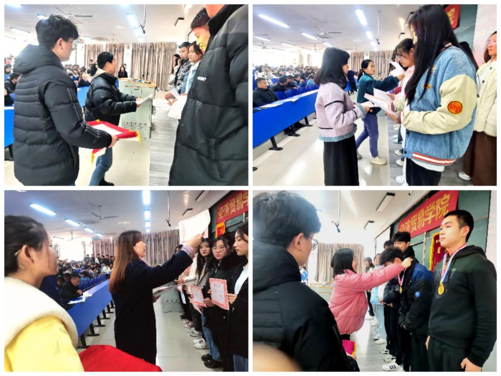 本学期的工作和学习即将落下帷幕,经济贸易学院的每一份荣誉都离不开全体经贸师生的辛勤付出。本次会议让表彰发挥积极激励作用,发挥优秀学生榜样示范作用,进一步推进经济贸易学院的优良学风建设,不断提升经贸师生的昂扬斗志。全体经贸学子会进一步在各项活动中展现的良好精神面貌和奋勇拼搏的风采投入到今后的学习生活中,把握当下,向着未来奋勇争先,再创经贸辉煌!(供稿:胡佳 审稿:张超))