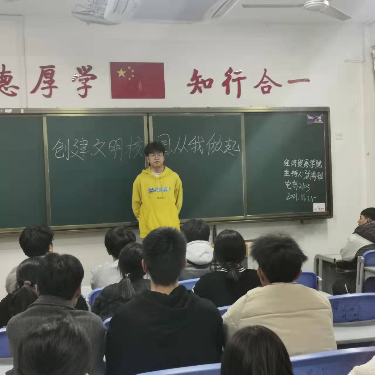 全体专兼职辅导员老师开展了以“争做文明学生,共创文明校园”为主题的班会,带领同学们深入学习了《安徽财贸职业学院学生文明行为规范》《学生宿舍文明公约》。鼓励大家在以后的学习和生活中做到举止得体、言行文明、品德高尚、尊重他人,坚持不懈地提升自身道德素质。同学们也纷纷表示要从小事做起,立志成为一名高素质的文明大学生。