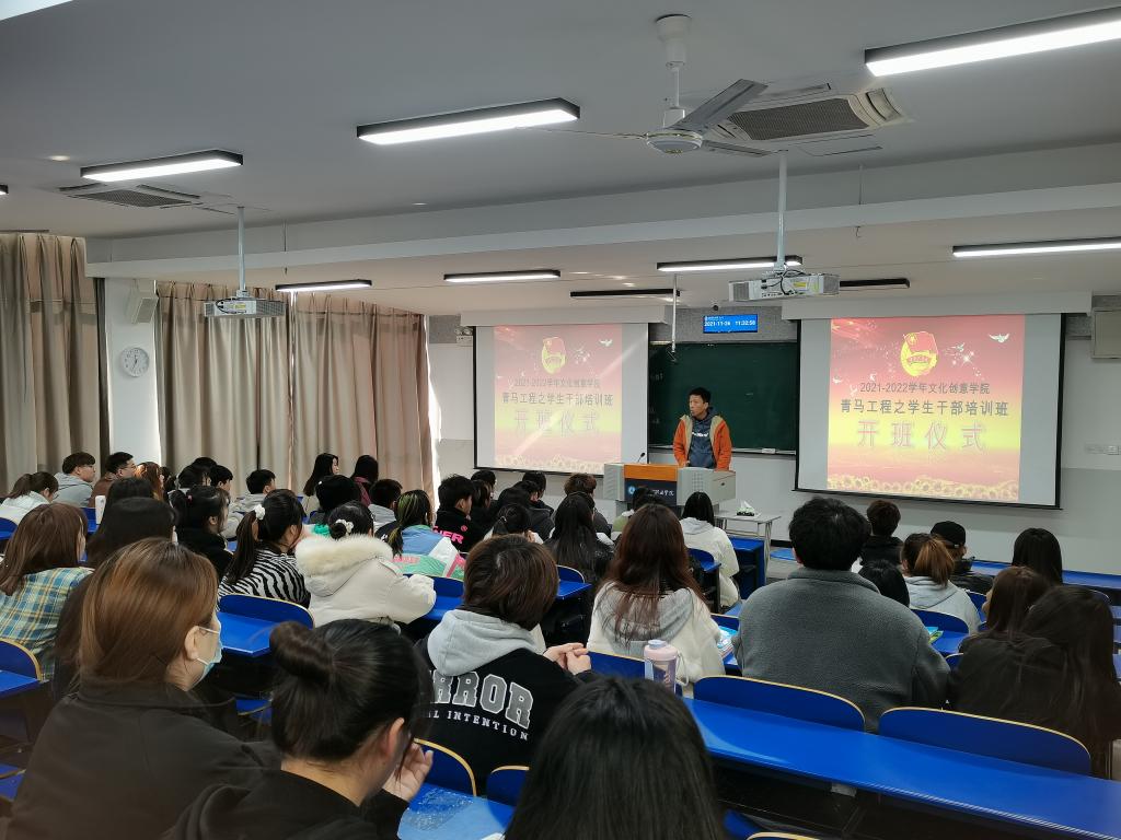 为进一步加强学生干部队伍建设,更好地开展学生工作,发挥学生干部“自我教育、自我管理、自我服务”的积极作用。11月26日,文化创意学院2021年度“青马工程”培训班开班仪式在6101举行,会议由团总支书记刘凯主持。