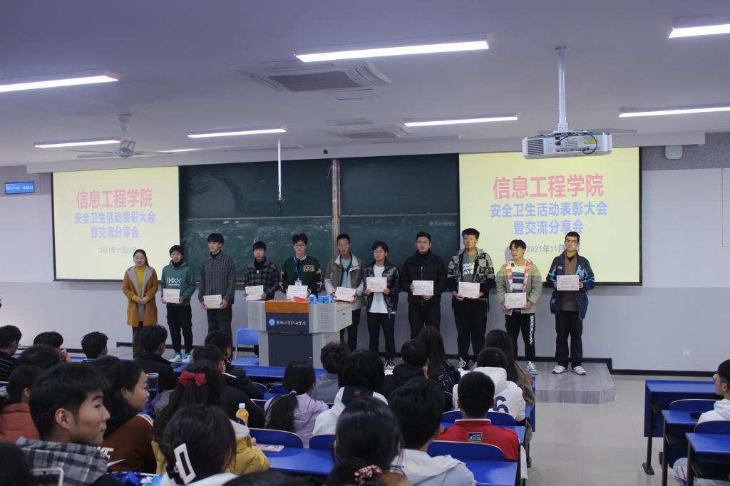 为进一步强化宿舍安全文明建设,11月22日中午,信息工程学院在6103教室举行了安全文明卫生总结暨表彰大会。会议由团总支书记梅云凤主持,全体团学干部和2021级全体寝室长参加。