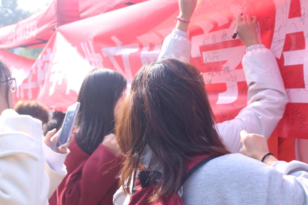 活动之前,我院团总支宣传部开展了广泛的动员宣传,同学们了解到此次签名活动是关于校园文明规范教育的,便纷纷驻足,积极参与,有条不紊排队的在横幅上签下了自己的名字,以此来互相监督,向不文明行为说“不”。