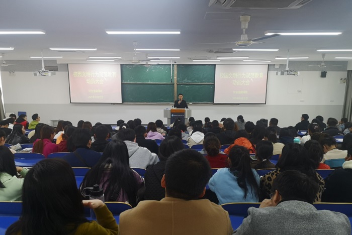 11月12日中午,财会金融学院在6103召开了校园文明规范教育动员大会,全体专职辅导员、学生党员、团学干部及部分入党积极分子参加会议。