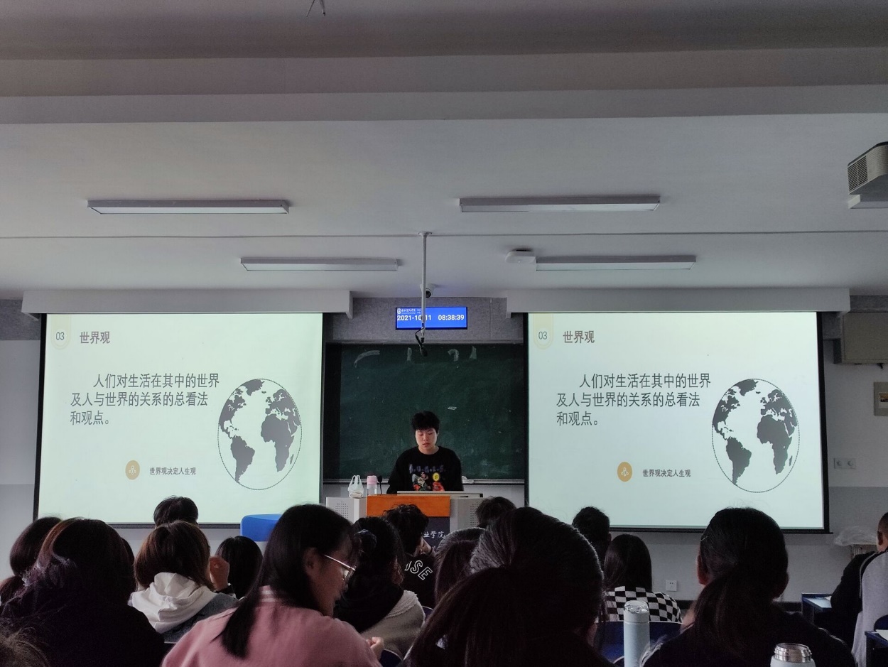 课程的第一章是《领悟人生真谛,把握人生方向》,在系统教授人生观是什么,什么是正确的人生观以及如何创造有意义的人生这三个问题后,《思想道德与法治》教研室组织了第一次课堂实训教学活动,实训教学主要以学生实训小组为单位,通过PPT汇报形式呈现,各实训小组围绕所学内容,悟思想、谈体会、担使命。