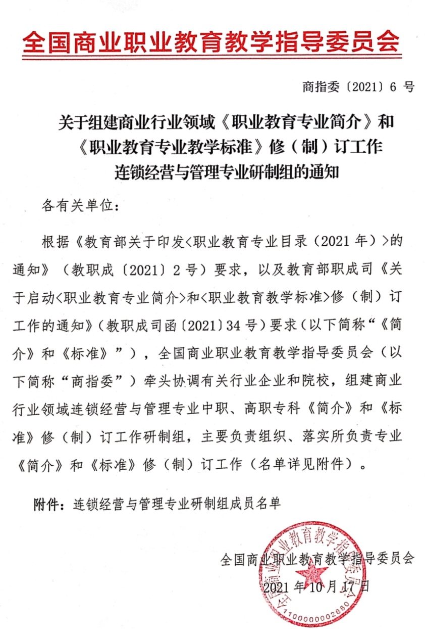 此次教育部全国中职、高职专科专业标准研制工作,是根据教育部及职成司相关通知和文件要求,由全国商指委牵头协调有关行业企业和院校组建工作研制组负责具体落实。
