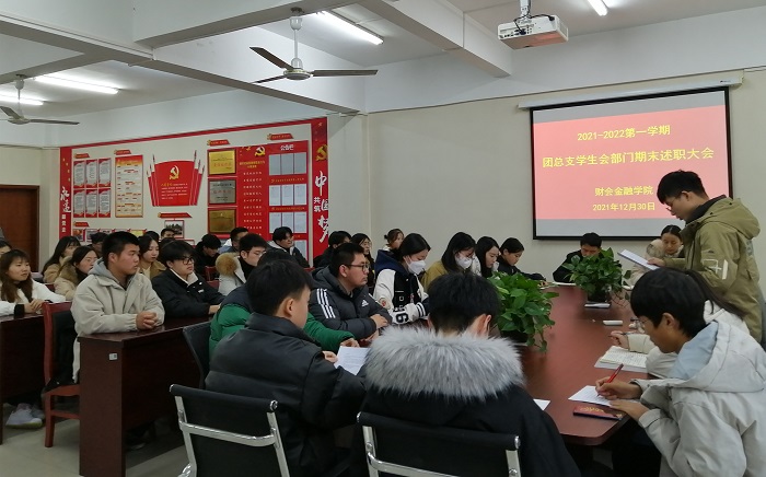 在即将过去的2021年,财会金融学院团学干部团队在经历中成长,在磨砺中成熟。12月30日下午,财会金融学院在312办公室召开团总支学生会期末总结述职大会,会议由团总支书记沈丽萍主持,党总支副书记李健参会。