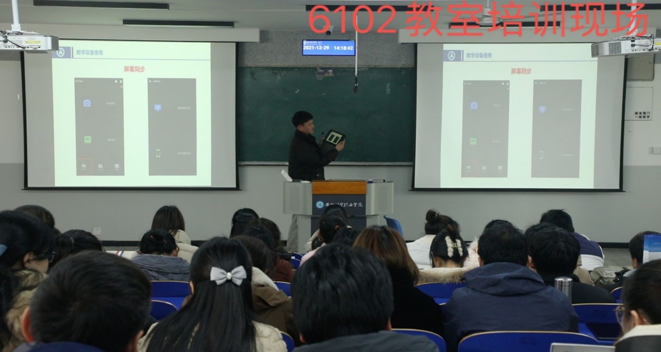 学校的59间常态化智慧教室现已投入使用,为充分发挥智慧教室的功能,提升智慧化教学水平,现代教学技术中心于12月29日下午在6101和6102阶梯教室组织开展了学校全体专兼职教师常态化智慧教室设备使用的培训。