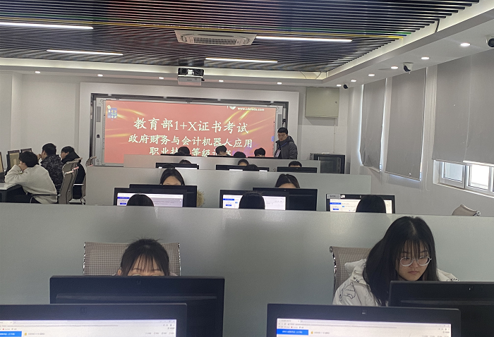 为贯彻《关于推进“1+X”证书制度试点工作的指导意见》,落实职业院校学历教育和职业技能并重的人才培养目标,12月26日,财会金融学院会计专业50名同学完成了“政府财务与会计机器人应用”职业技能等级证书(初级)认证考试。