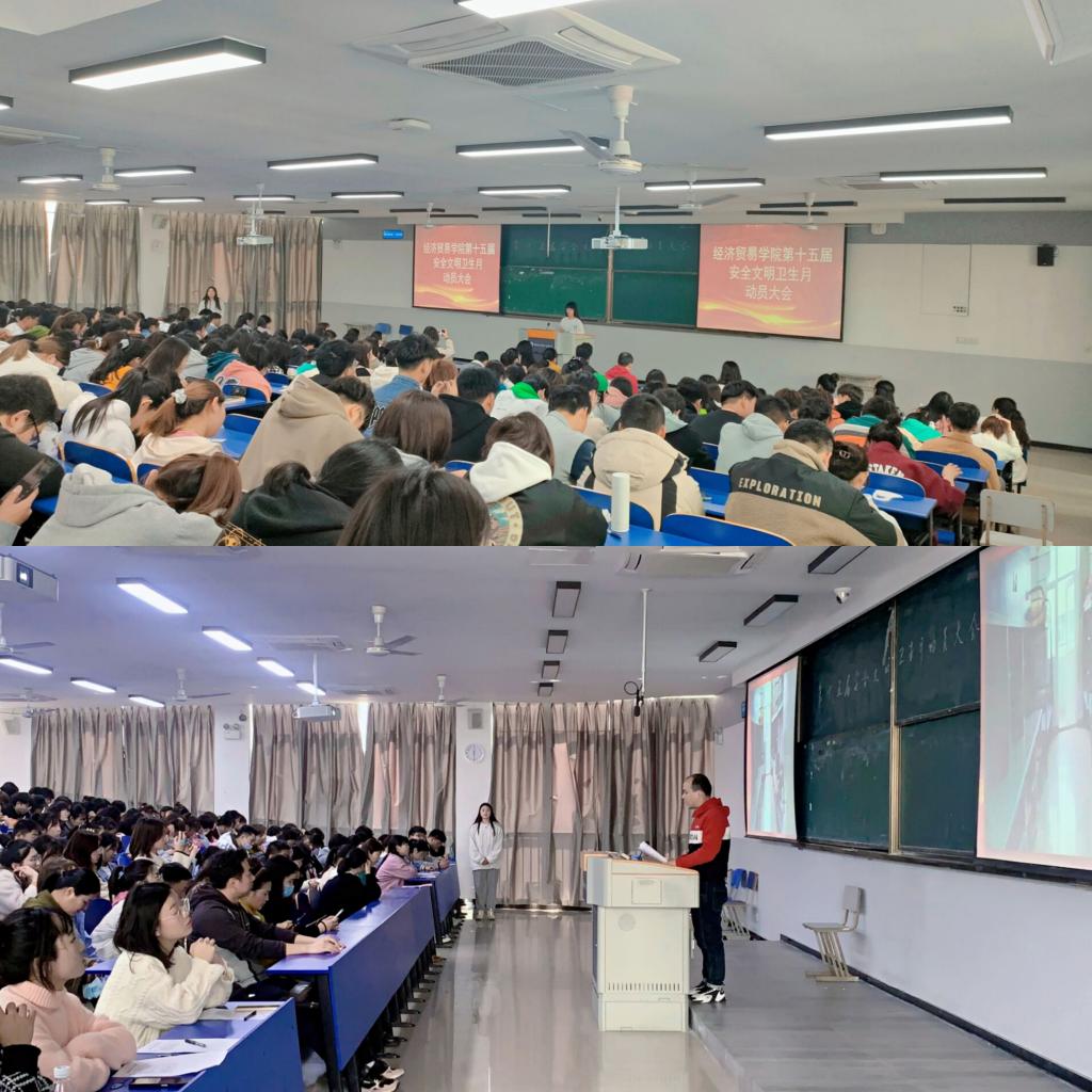 3月4日,经济贸易学院召开了第十五届安全文明卫生月动员大会,党总支副书记丁蓉、团总支书记张超、学生处公寓中心主任刘成、全体专职辅导员、兼职辅导员以及全体宿舍长参会。