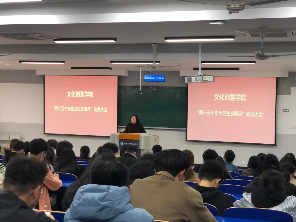 为了加强学生行为规范教育,提升学生文明素养,文化创意学院于3月4日中午在6102教室召开了“第十五个安全卫生文明月动员大会”,党总支副书记宋凌云、全体专职辅导员老师、团学干部、班长、寝室长参加了会议。